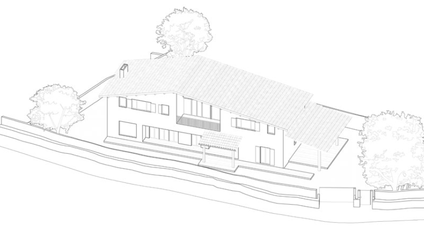Con una importante cubierta a dos aguas, quizás la casa más cántabra del conjunto, incorpora soportal, gran estar conectado con la cocina y el comedor, un dormitorio en planta baja, y además de cuatro dormitorios con sus cuartos de baño, un espacio central en planta primera con una solana a sur y una galería abierta hacia los prados a norte.